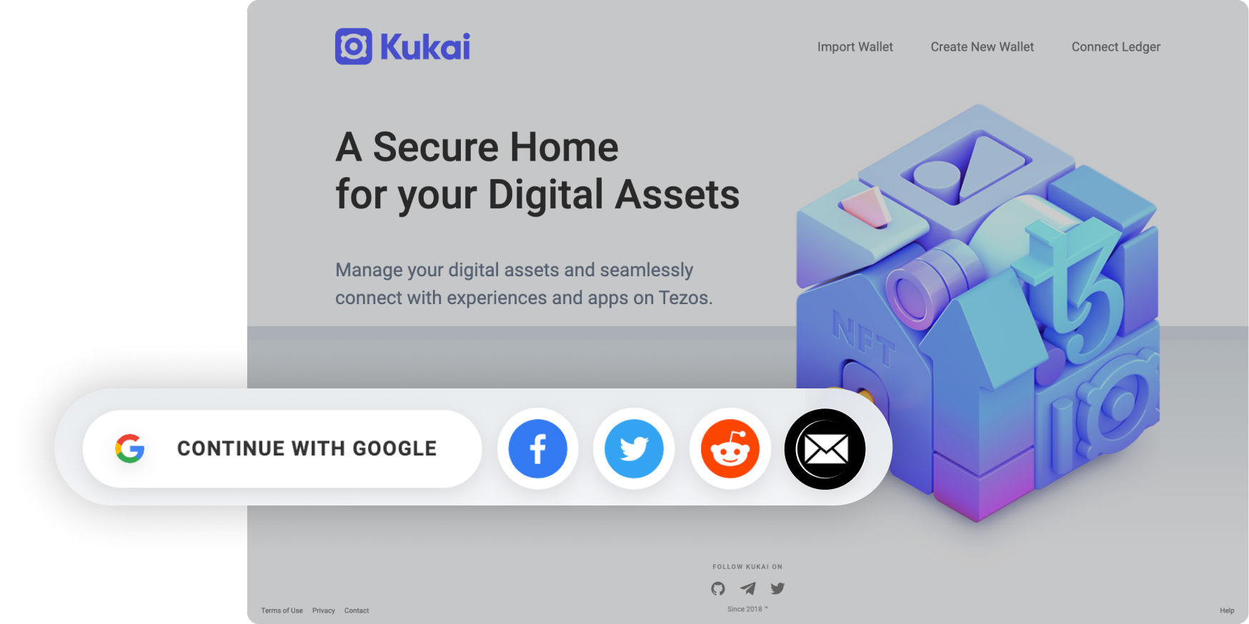 You can use any Tezos wallet but for this tutorial Kukai is useful as it allows you to use social logins.