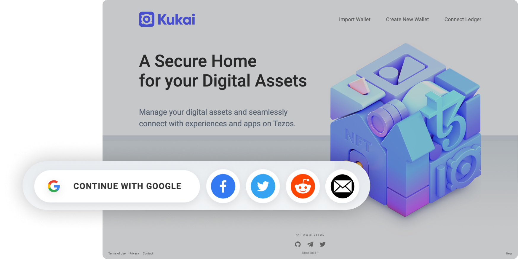 You can use any Tezos wallet but for this tutorial, Kukai is useful as it allows you to use social logins, making it extremely user-friendly to create and fund.